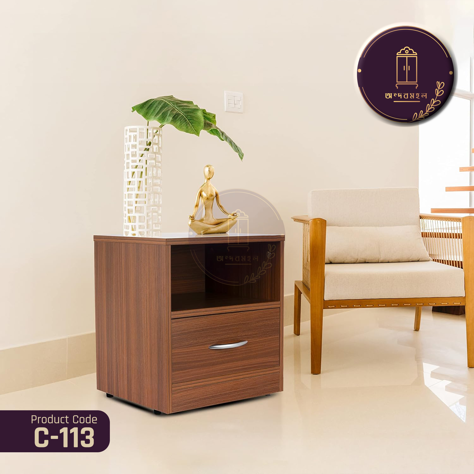 Experience luxury and durability with the Bedside Table/Corner table- Roshonita- crafted from premium-quality boards to provide unmatched support and comfort. Its modern design effortlessly elevates any bedroom’s aesthetic, while its uncompromising build ensures years of reliable use. Don’t miss out—order yours now.